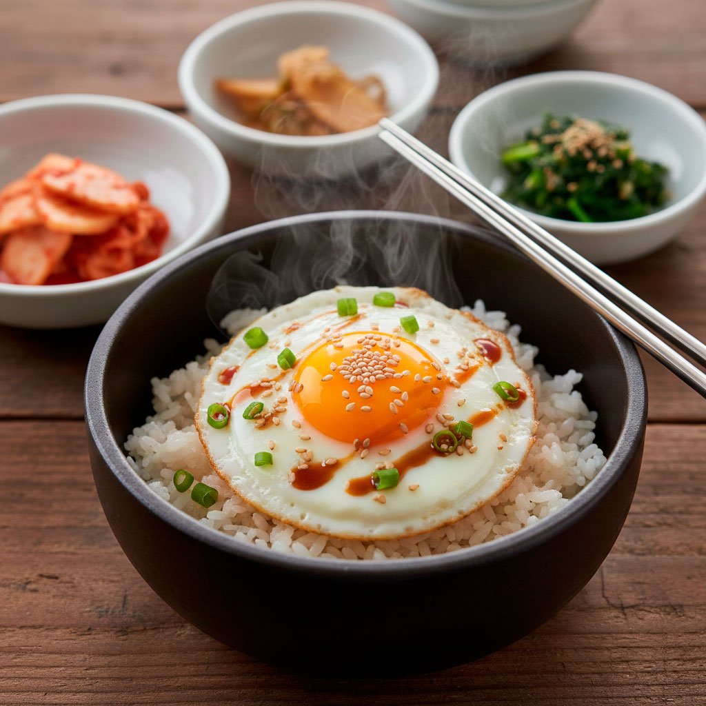 • Gyeran-bap (arroz con huevo): arroz caliente, huevo frito, salsa de soya y aceite de sésamo; 10 minutos.