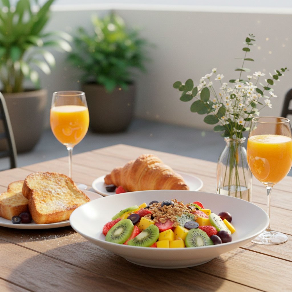 Desayuno sorpresa con frutas frescas y toque gourmet